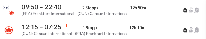 Aktuell gibt es wirklich super Preise nach Cancun. Praktisch das ganze Jahr über gibt es aktuell Flüge zu guten Preisen ab zahlreichen Flughäfen ab Deutschland. Darunter alle großen wie Berlin, Hamburg, Köln, München, Frankfurt, Stuttgart etc. Also falls unser Beispiel nicht euer Wunschdatum und/oder Wunschabflughafen ist, probiert einfach andere Daten und Flughäfen aus, die Verfügbarkeiten sind echt hoch!