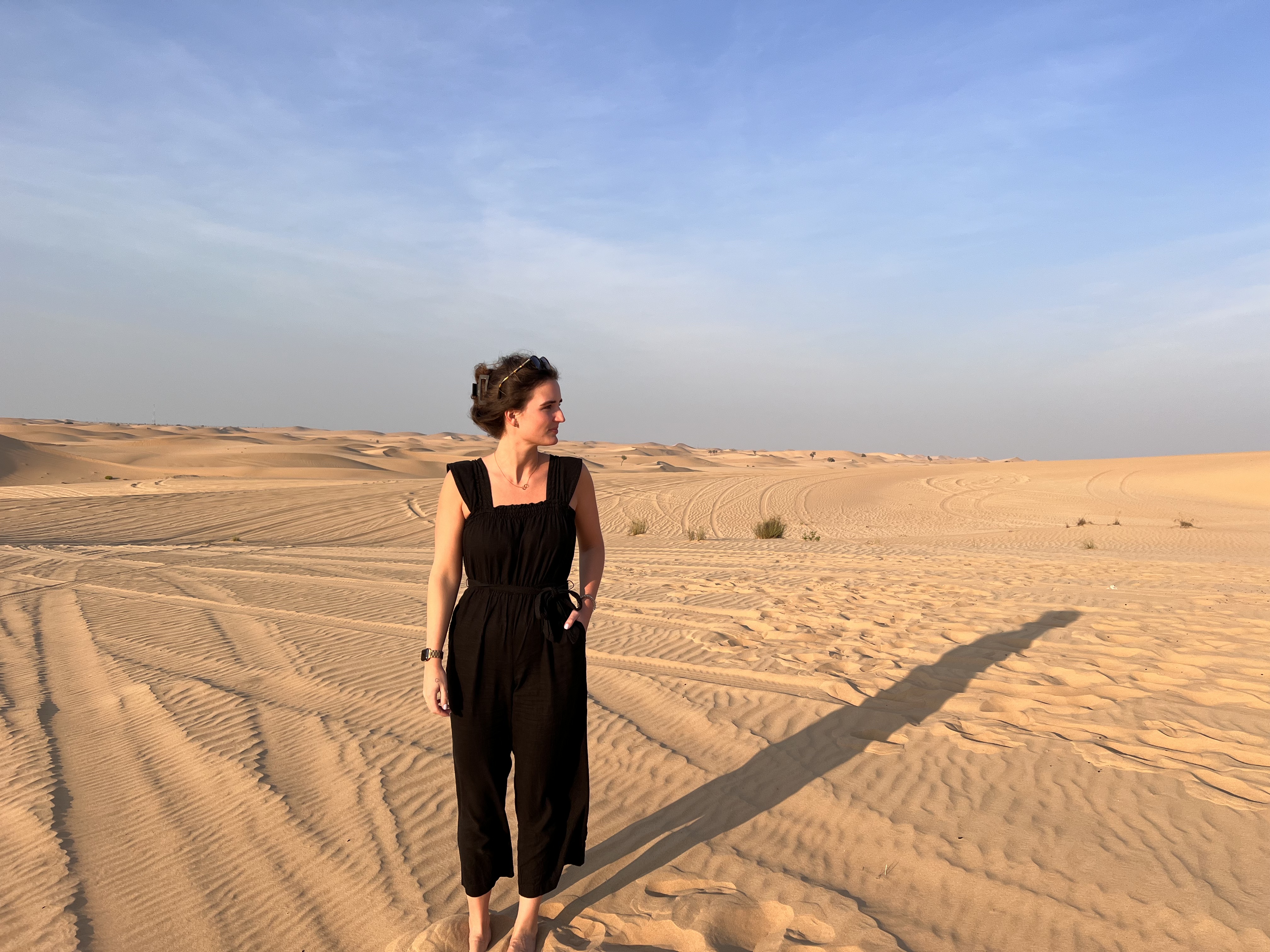 Während der Woche habe ich bis auf den hier inkludierten Ausflug zum Global Village bzw. ins Shindagha Museum alles mitgemacht. Die Wüstensafari war dabei mein persönliches Highlight, es hat unheimlich viel Spaß gemacht, die Dünen hoch- und runterzufahren (doch Vorsicht: Reisetabletten sind für empfindliche Mägen empfehlenswert 🤭). Im Anschluss konnten wir Sandboarding machen oder uns bei einer Tasse Tee entspannen. Am Abend gab es ein superleckeres Buffet mit anschließender Tanzshow - und das alles unter einem traumhaften Sternenhimmel ✨.
