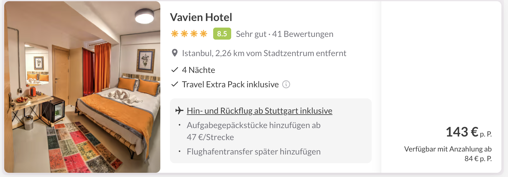 ℹ️ Alle hier genannten Reisepreise sind mit der Veröffentlichung des Deals verfügbar und buchbar, jedoch haben wir keinen Einfluss darauf, wann und wie stark sich ein Reisepreis verändern kann. Wenn die Nachfrage besonders hoch ist, kann der Flugpreis sich besonders schnell verändern und Unterkünfte ausgebucht werden.