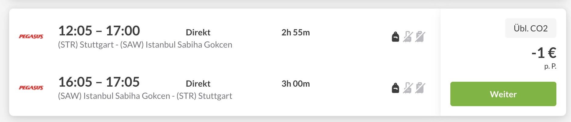 Nach Weiterleitung könnt ihr den Abflughafen, die Flugzeiten und das Datum nach euren Wünschen anpassen.