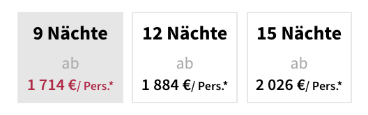 Auch ist es möglich aus den 9 Nächten 12 oder sogar 15 zu machen und somit den Strandurlaubanteil eurer Reise zu verlängern: