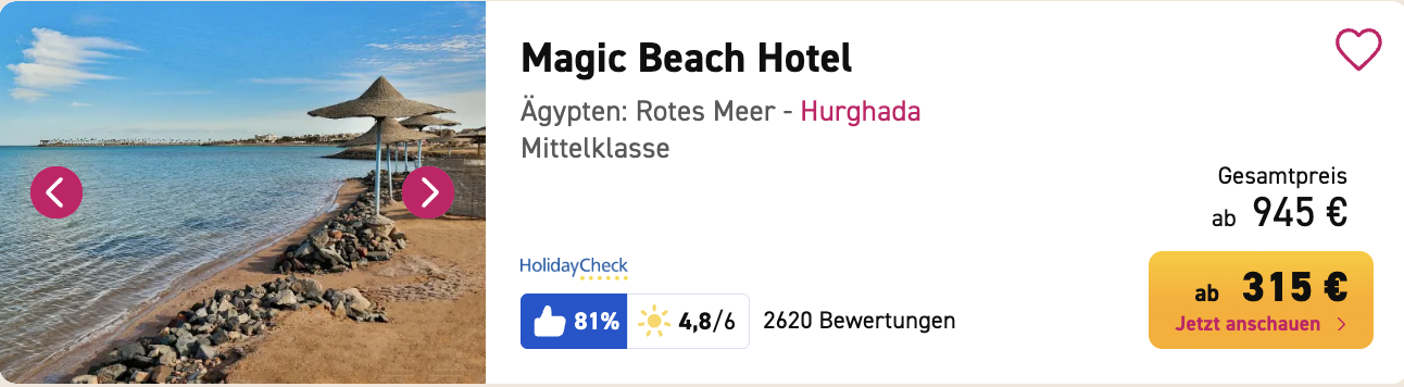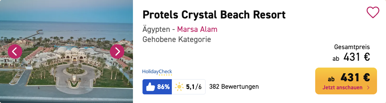 🚨 Beachtet bitte: Bei einem Aufenthalt in Marsa Alam und Umgebung empfehlen wir den Flug nach Marsa Alam statt Hurghada, da sonst die Fahrt mit dem Transfer deutlich länger ist.