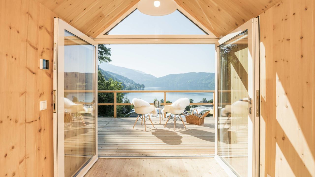 Die Biwaks am Millstätter See sind 15 qm große Holzhäuschen, die Platz für ein Bett, einen Tisch samt zwei Stühlen und ein Bad bieten. Durch das großzügige Panoramafenster und das Dachfenster über dem Bett könnt ihr den Sternenhimmel und den Sonnenaufgang vom Bett aus betrachten. Außerdem werdet ihr mit einem Frühstücks- und Gourmetkorb verwöhnt.
