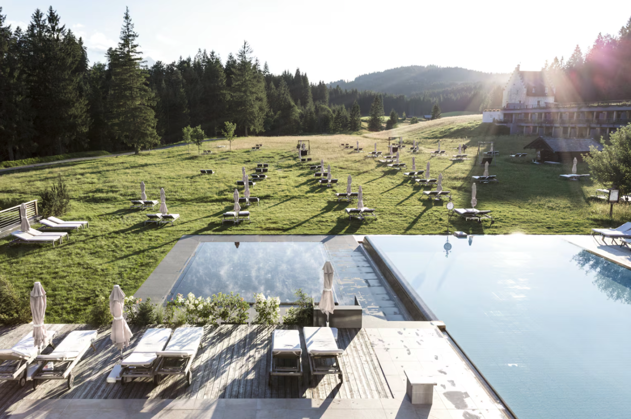 Inmitten des Allgäu befindet sich das vielleicht beste Wellnesshotel Deutschland: Das Kranzbach überzeugt mit seiner Lage am Fuße der Zugspitze auf über 1.000 Metern Seehöhe und inmitten einer Bergwiese, sodass ihr hier fernab vom Stress abschalten könnt. Im eigenen Badehaus warten fünf Pools auf die Gäste, dazu gesellen sich 8 Saunen und Dampfbäder. Für Frauen gibt es ein Ladies Spa.