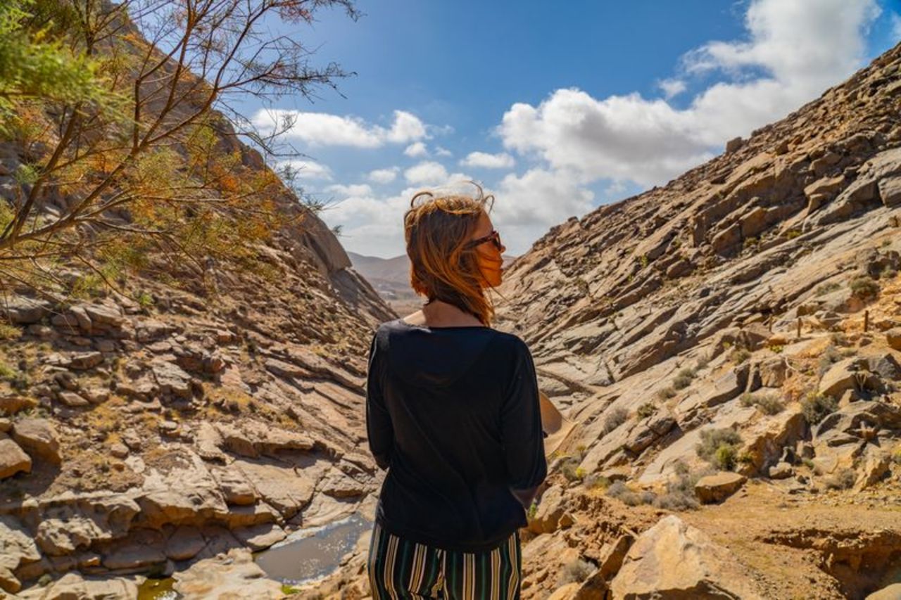 Das kleine Dorf Betancuria liegt im Herzen der Insel. Die ehemalige Hauptstadt Fuerteventuras überrascht mit weiß getünchten Häusern, alten Kirchen, Cafés und vielen Blumen und Gärten – ein grünes Juwel in der kargen Landschaft. 💚 Tipp: Nur 15 Fahrminuten entfernt könnt ihr entlang eines ausgetrockneten Flussbettes zur versteckten Kapelle Ermita de las Peñitas wandern.