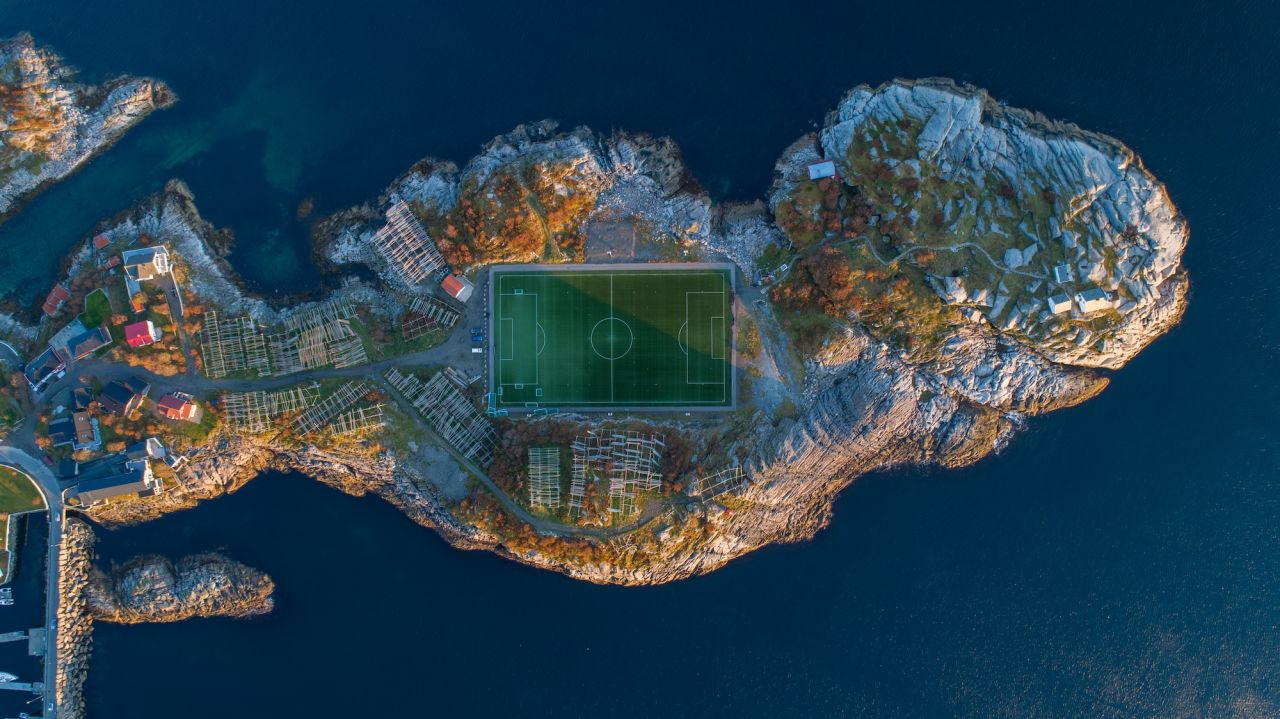 Zunächst geht es hoch in den Norden zum vielleicht bekanntesten Platz in dieser Liste. Henningsvær auf den Lofoten ist ein Fischerdorf, welches sich auf zwei Inseln befindet. Gekickt wird umgeben von Wasser auf einer vorgelagerten Insel - und das im Sommer wegen der Mitternachtssonne sogar rund um die Uhr.
