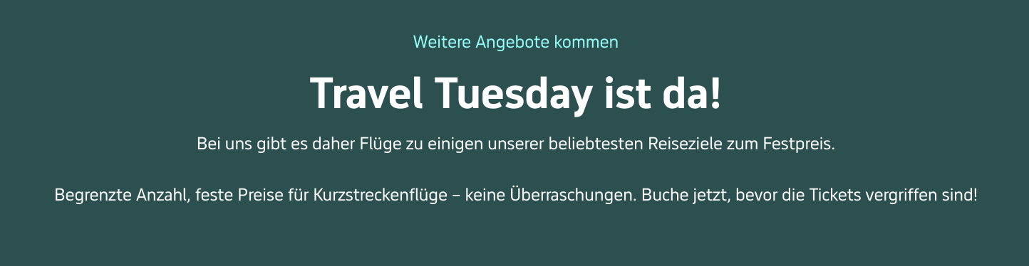 ⚠️ Aber aufgepasst: Dieser Sale läuft nur heute, am Travel Tuesday, für 24 Stunden ab 12 Uhr!