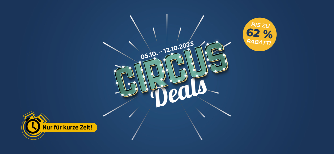 Mit den CIRCUS DEALS erwartet euch eine bunte Mischung an Deals: einzigartige Erlebnisse sind ebenso vertreten wie entspannte Hotelaufenthalte. Zum Beispiel bekommt ihr einen Ausflug ins Disneyland Paris schon für 69€ pro Person und das Tropical Islands könnt ihr bereits ab 39€ pro Person unsicher machen. So oder so könnt ihr euch auf nochmals deutlich vergünstigte Deals freuen.