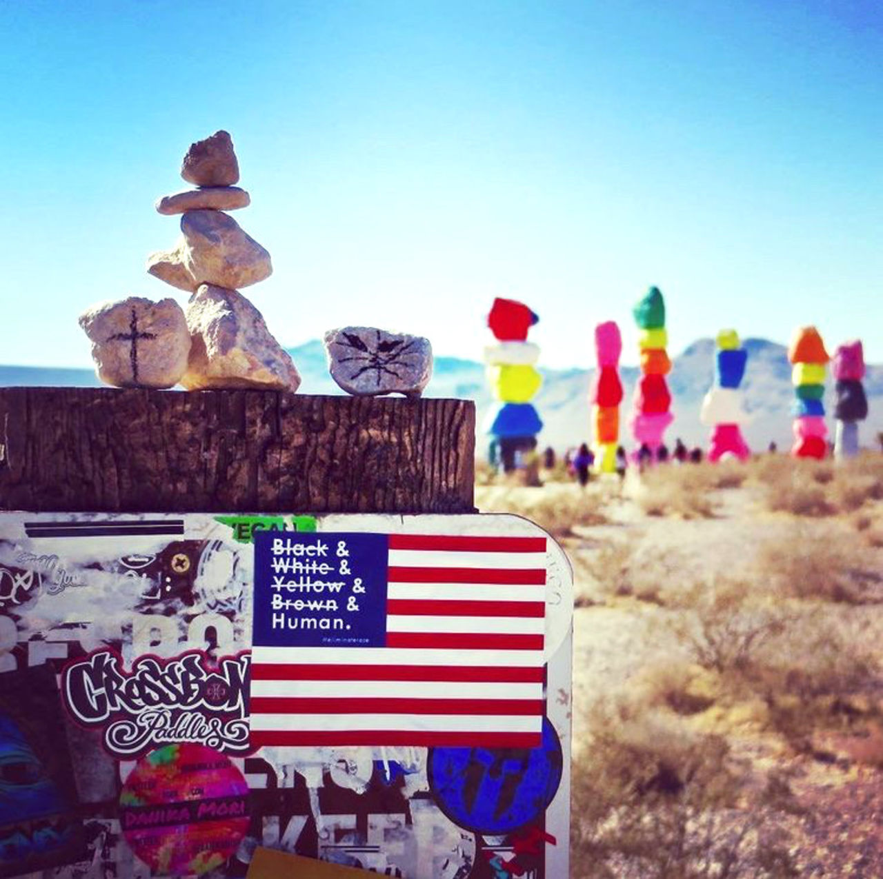 Dieser bunte Ort hat entgegengesetzt zu seinem Namen eigentlich nichts mit einem "Mountain" zu tun - zumindest wüsste ich nicht was. Die Kunstinstallation wurde vom Schweizer Künstler "Ugo Rondinone" errichtet und wirkt wie eine surreale und außerirdische Installation im Nirgendwo. Wer in Richtung Las Vegas unterwegs ist, sollte hier unbedingt stoppen, der Eintritt ist frei.