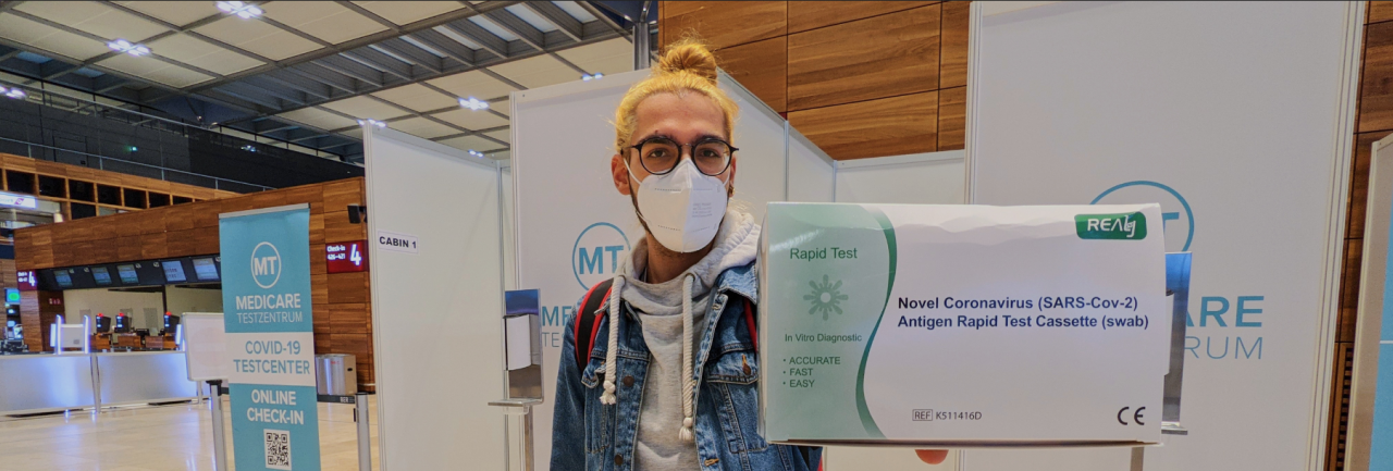 Macht euch dann auf den Weg zu eurem gewählten Testzentrum. Ich habe mich für das Testzentrum am Flughafen Berlin-Brandenburg entschieden, so konnte ich nebenbei noch die neue Strecke des FEX, dem Flughafenexpress, genießen. Tragt einen Nase-Mund-Schutz, etwa nach FFP2 oder KN95 Standard oder eine OP-Maske und haltet natürlich genügend Abstand, ihr kennt das ja alles. ;)
