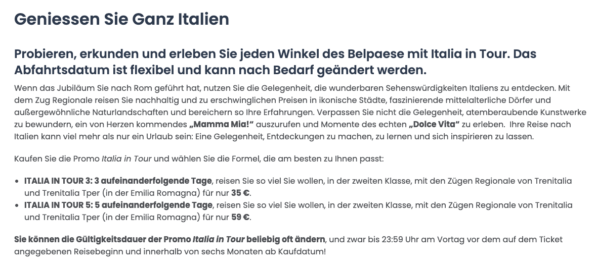 Anreise nach Italien buchenHIER ENTLANGZugfans aufgepasst, hier kommt ein richtig genialer Deal für euch!