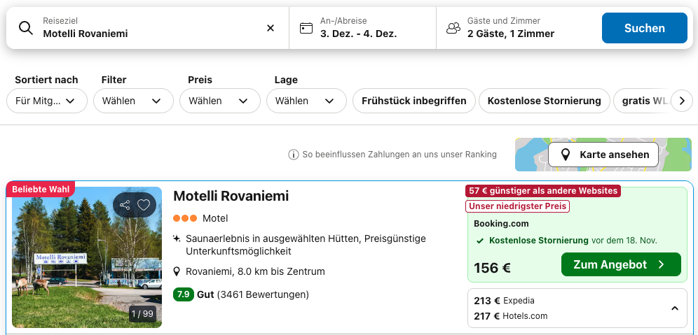 Natürlich könnt ihr euch auch eine luxuriösere Unterkunft buchen, in Rovaniemi zahlt ihr allerdings schnell ein paar hundert Euro pro Nacht. Die Unterkunft ist etwas außerhalb, hier findet ihr aber günstige Mietwägen.