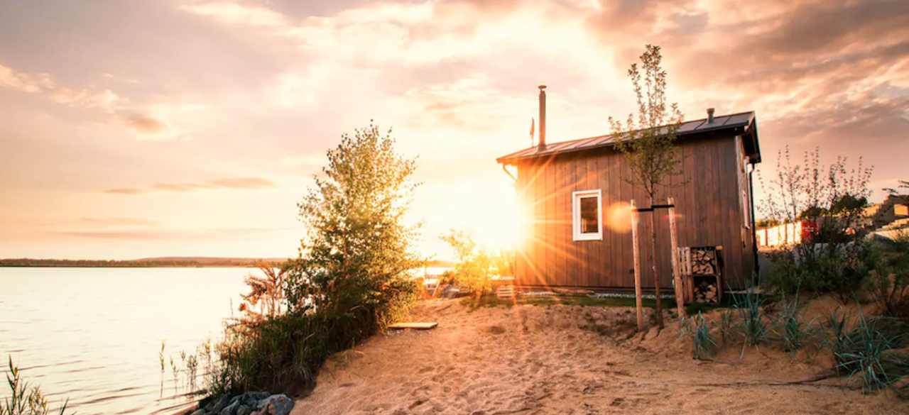 Noch ein hübsches Tiny House, diesmal am Hainer See. Macht es euch vor dem Werkstattofen bequem und genießt die umfangreiche Ausstattung im kleinen Format. Über eine Leiter gelangt ihr in den Schlafbereich mit Bullauge. Das Häuschen bietet Platz für 2 Personen.