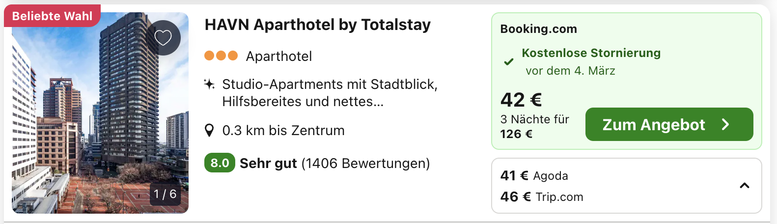 42€ = 21€ p.P. bei einer Reise zu zweit
