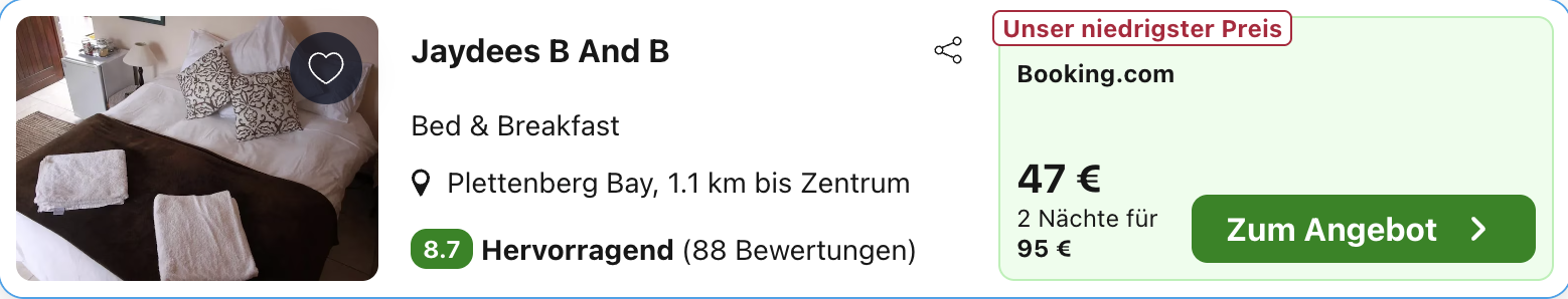 95€ = 47,50€ p.P. bei einer Reise zu zweit