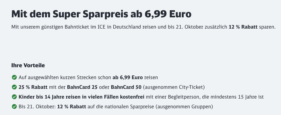 Nur noch für kurze Zeit! Super-Sparpreis-Aktion der Deutschen Bahn | Tickets ab 6,15€