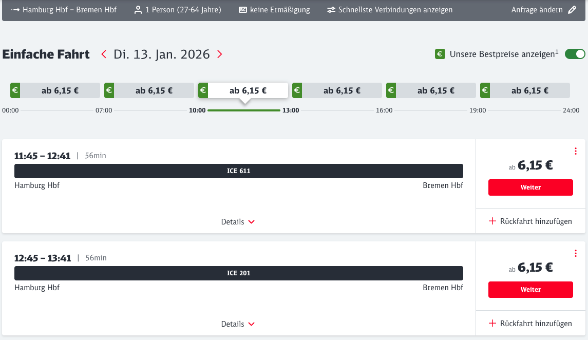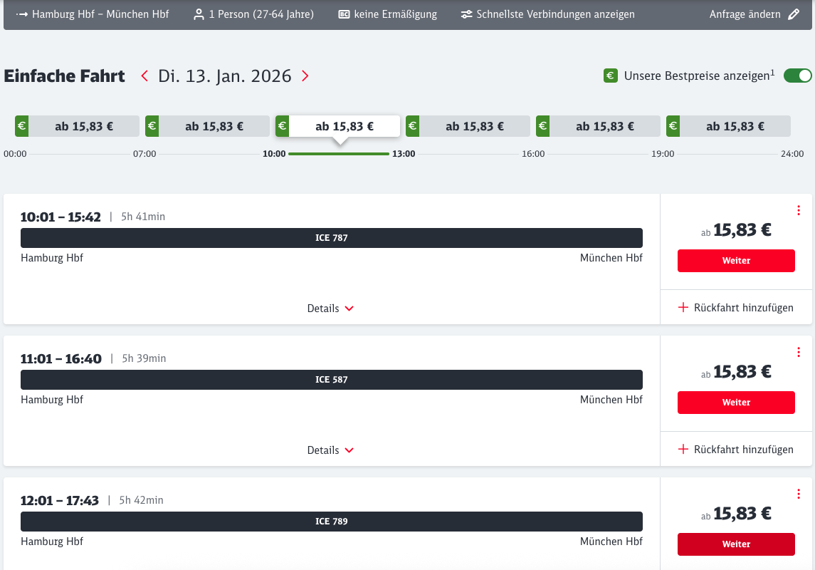 ⏰ Buchbar bis: 21.10.2025 bzw. bis das Kontingent auf der jeweiligen Strecke aufgebraucht ist.